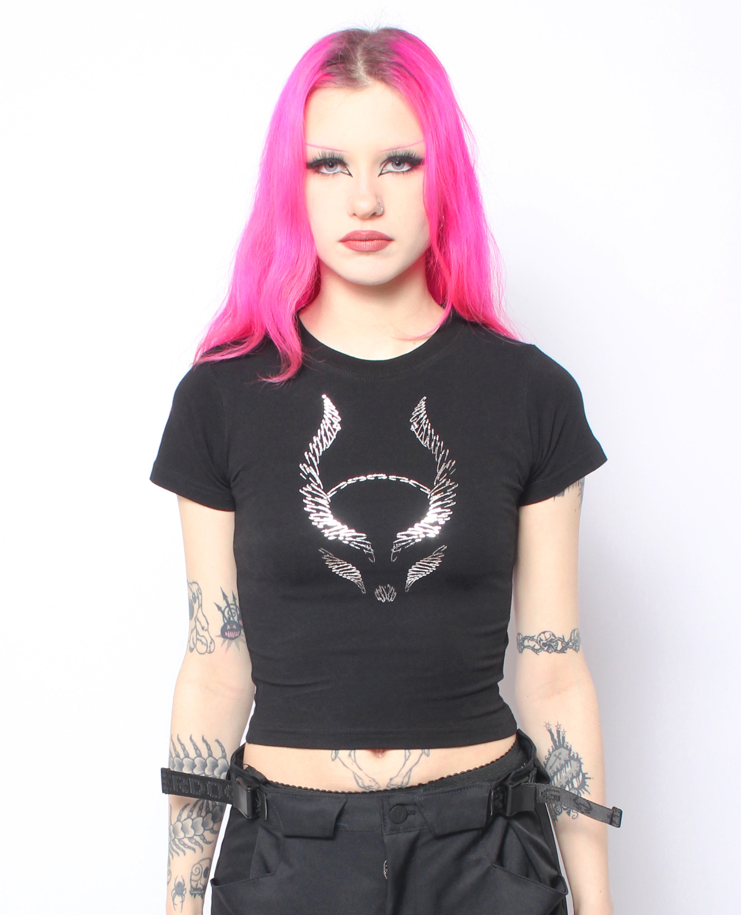 Sharpen up withthe Atomic Vest Punkture, asleeveless top with a punk-inspired safety pin design. This vest offers a streamlined look that pairs well with mesh layers, or under hoodies and jackets. Perfect for both rave and street styling!