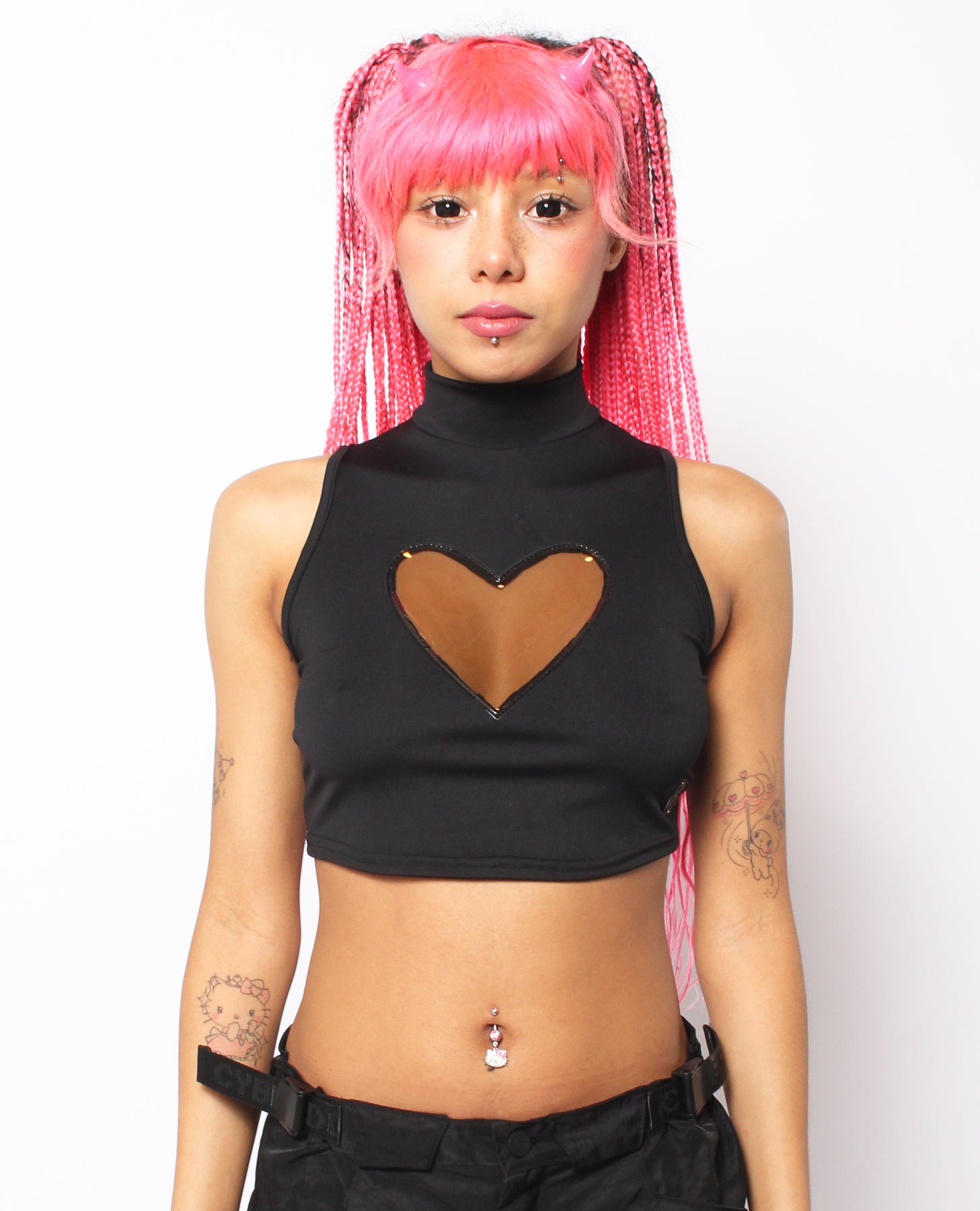 Experience ultimate comfort and style with the Luva Bralet. Perfect for any occasion, whether it's a night out at the club, a music festival, or a rave, this top will keep you feeling cool and looking hot! Its high neck and see-through plastic heart add a unique and alluring touch to your outfit. Don't just blend in, stand out and make a statement with the Luva Bralet.