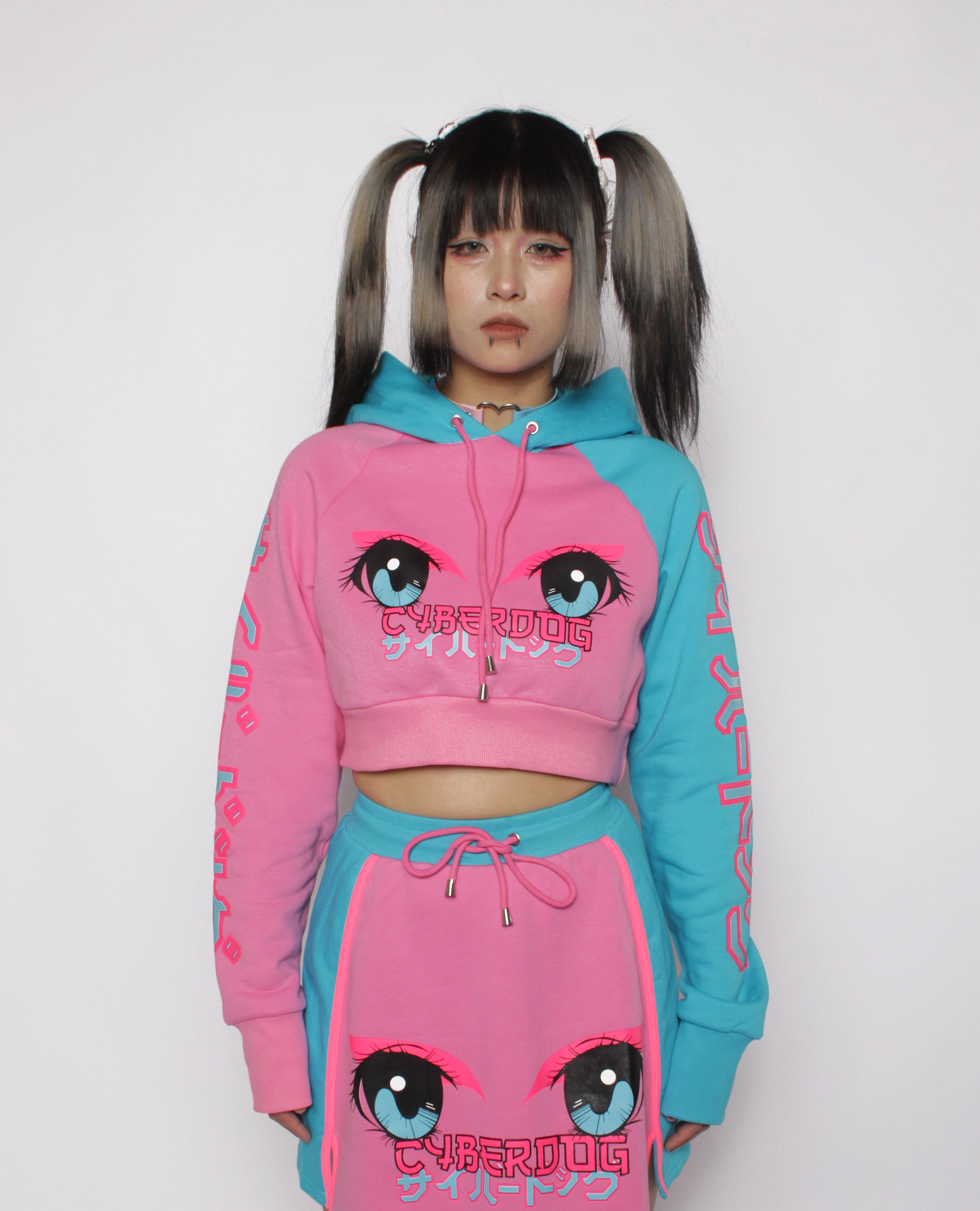 Turn up the energy in the Cropped Sweater Animatic: your go-to for bold, rave-ready style. This cropped sweater features an anime-style eyes across the chest and sleeves in poppin’ hues that stand out day or night. The relaxed fit and soft ribbed hem give it a casual feel, while long sleeves keep you covered during late-night sets.