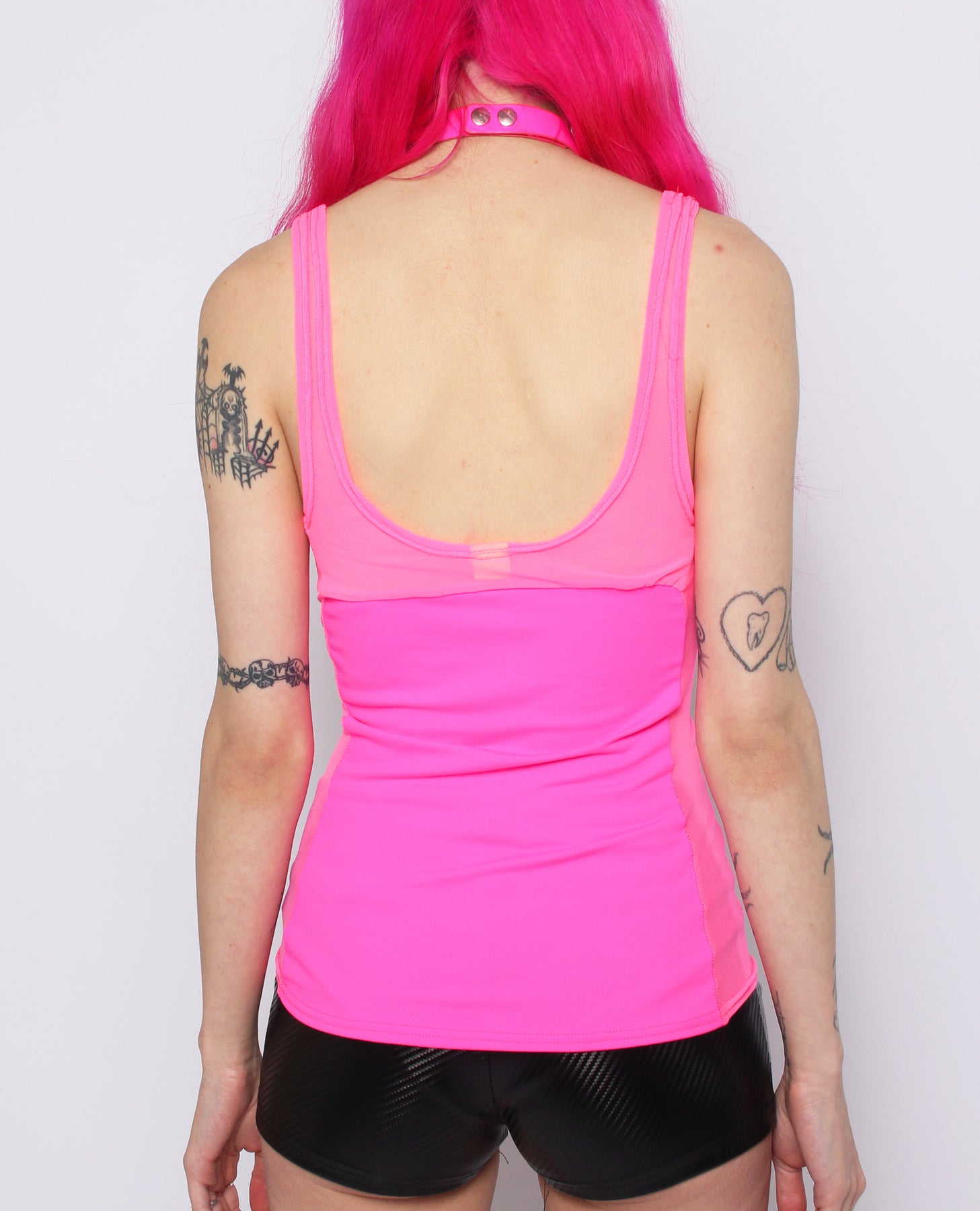 The MELT VEST in pink is a cute, futuristic addition to any wardrobe. Its mesh outline adds a cyber touch, making it a unique and stylish choice. Stay on trend with this one-of-a-kind piece.